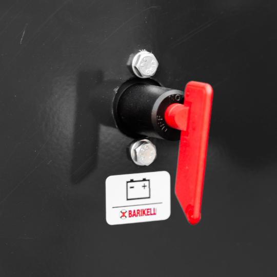 Centralny wyłącznik pozwala szybko odciąć zasilanie maszyny, zwiększając bezpieczeństwo pracy.