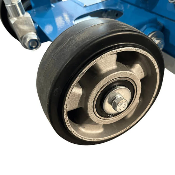 Wytrzymałe koła ułatwiają transport maszyny.