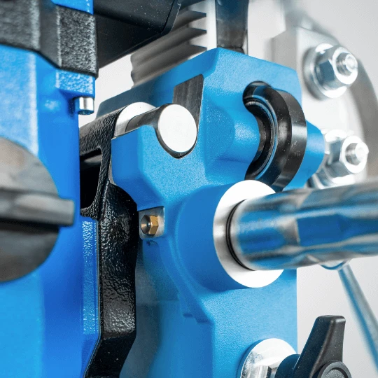 Precyzyjna regulacja eliminuje luz prowadnicy, zwiększając dokładność wiercenia.