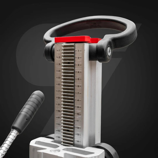 Kolumna z podziałką umożliwia płynny przesuw i stabilne prowadzenie wiertnicy.