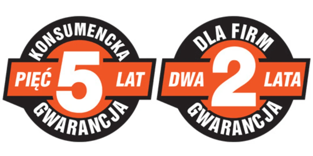 - Dla konsumentów (użytkowanie indywidualne): Standardowa 2-letnia gwarancja konsumencka zostaje przedłużona do 5 lat.