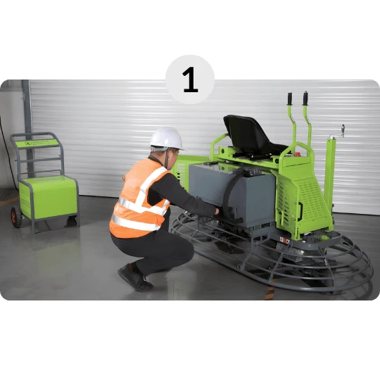Mobilna stacja ładowania Conmec – szybkie i bezpieczne ładowanie zacieraczek akumulatorowych