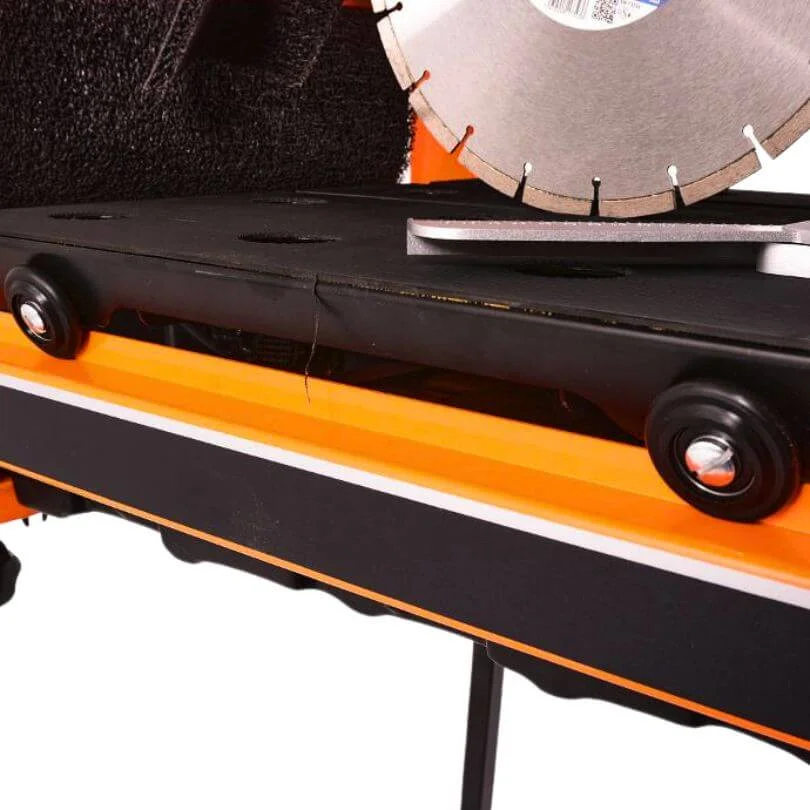 Za zasilanie odpowiada mocny silnik o napięciu 230V i mocy 2.2kW, który rozkręca tarczę do prędkości 2800 obr/min, co znacząco przyspiesza proces cięcia. Pila pozwala na maksymalną długość cięcia: 700mm, a sam stół roboczy mierzy 600 x 600mm, co zapewnia wystarczającą powierzchnię do pracy z większymi elementami. Precyzyjna tarcza o średnicy 350mm x 25.4mm umożliwia cięcie na głębokość do 110 mm, co pozwala na obróbkę materiałów o różnorodnej grubości.