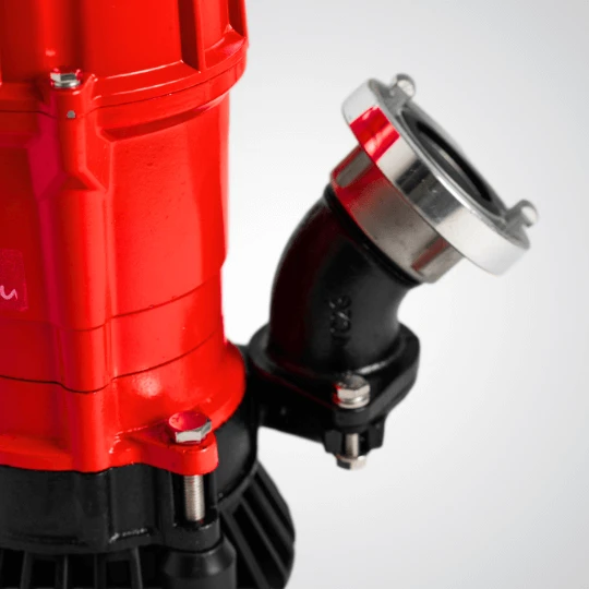- Kolano tłoczne z przyłączem – ułatwia szybkie podłączenie węża tłocznego i umożliwia dopasowanie kierunku wylotu wody.