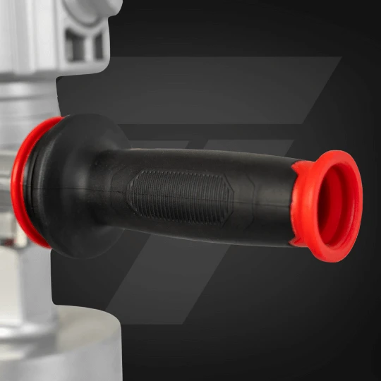 Antypoślizgowy uchwyt boczny zwiększa stabilność i bezpieczeństwo podczas wiercenia.