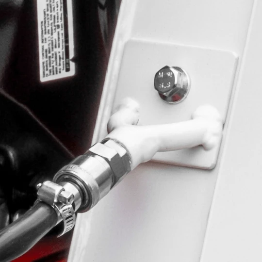 Osłona tarczy posiada dwa przyłącza wody, które chłodzą tarczę równomiernie. To zwiększa szybkość cięcia, ogranicza przegrzewanie i wydłuża żywotność diamentów.