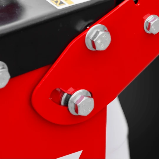 Zastosowanie 4 pasków klinowych gwarantuje natychmiastową reakcję i pewne przeniesienie mocy silnika. Wałek tarczy oparty jest na łożyskach wahliwych z możliwością smarowania, co znacząco wydłuża trwałość maszyny.