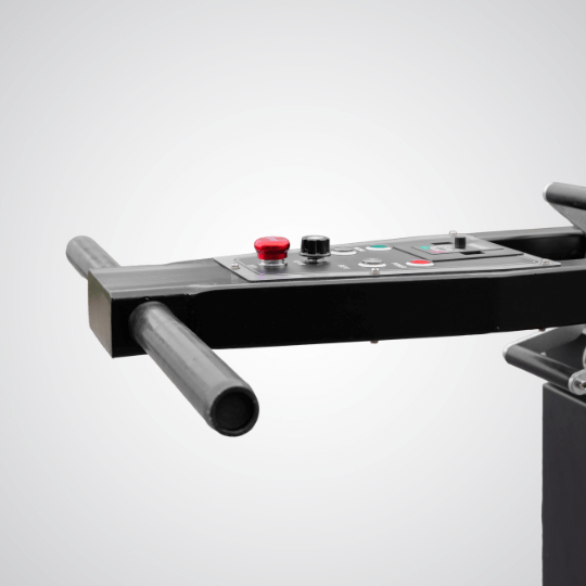 Regulowany uchwyt z panelem zapewnia wygodę sterowania i możliwość ustawienia pozycji transportowej.
