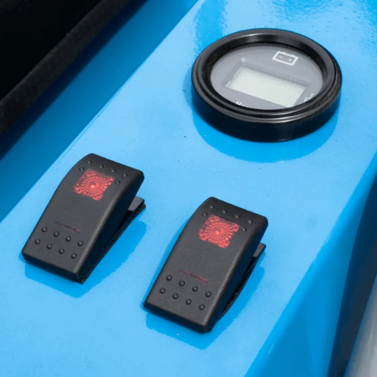 Intuicyjne przyciski do sterowania oświetleniem oraz czytelny licznik motogodzin.
