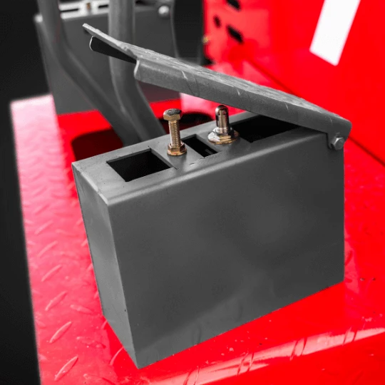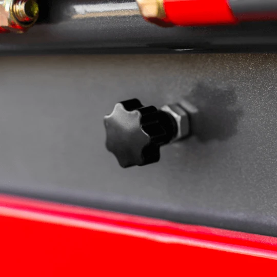 Przycisk bezpieczeństwa pozwala natychmiast zatrzymać maszynę w razie zagrożenia.