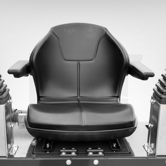 Ergonomiczne siedzisko z podłokietnikami zapewnia komfort pracy nawet podczas długich cykli roboczych.